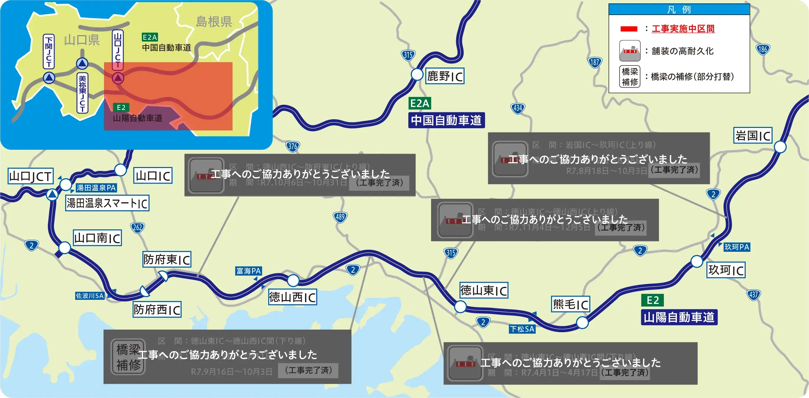 令和7年度の当該区間における昼夜連続車線規制が必要な作業は完了しました。